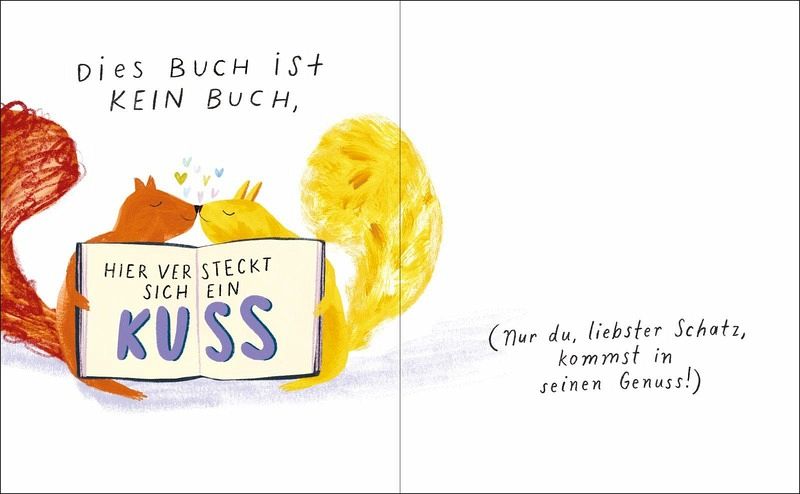 Dies Buch ist KEIN Buch, hier versteckt sich ein Kuss. (Nur du, liebster Schatz, kommst in seinen Genuss!) Ein Kuss, wie der Himmel, das schönste Geschenk. (Ich schweb wie auf Wolken, wenn ich an dich denk.)