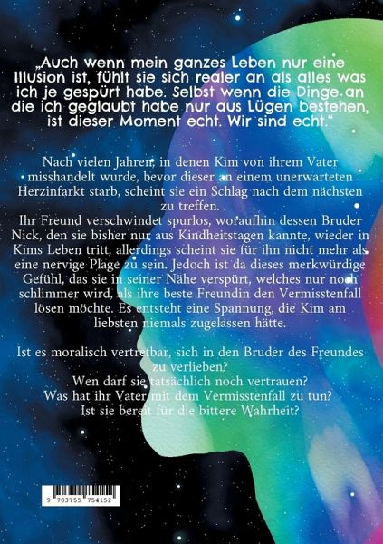 Nach vielen Jahren, in denen Kim von ihrem Vater misshandelt wurde, bevor dieser an einem unerwarteten Herzinfarkt starb, scheint sie ein Schlag nach dem nächsten zu treffen.Ihr Freund verschwindet spurlos, woraufhin dessen Bruder Nick, den sie bisher nur aus Kindheitstagen kannte, wieder in Kims Leben tritt, allerdings scheint sie für ihn nicht mehr als eine nervige Plage zu sein. Jedoch ist da dieses merkwürdige Gefühl, das sie in seiner Nähe verspürt, welches nur noch schlimmer wird, als ihre beste Freundin den Vermisstenfall lösen möchte. Es entsteht eine Spannung, die Kim am liebsten niemals zugelassen hätte.Ist es moralisch vertretbar, sich in den Bruder des Freundes zu verlieben?Wen darf sie tatsächlich noch vertrauen?Was hat ihr Vater mit dem Vermisstenfall zu tun? Ist sie bereit für die bittere Wahrheit?