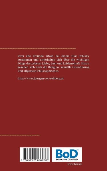 Zwei alte Freunde sitzen bei einem Glas Whisky zusammen und unterhalten sich über die wichtigen Dinge des Lebens: Liebe, Lust und Leidenschaft. Hinzu gesellen sich noch die Religion, sexuelle Orientierung und allgemein Philosophisches.