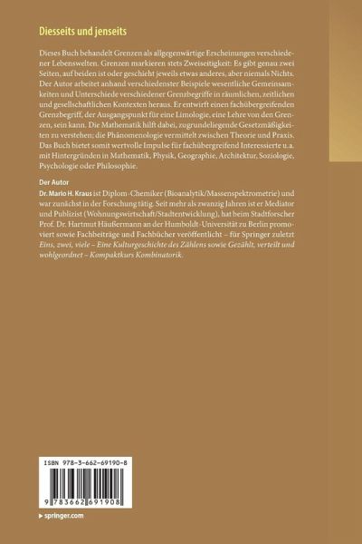 Dieses Buch behandelt Grenzen als allgegenwärtige Erscheinungen verschiedener Lebenswelten. Grenzen markieren stets Zweiseitigkeit: Es gibt genau zwei Seiten, auf beiden ist oder geschieht jeweils etwas anderes, aber niemals Nichts. Der Autor arbeitet anhand verschiedenster Beispiele wesentliche Gemeinsamkeiten und Unterschiede verschiedener Grenzbegriffe in räumlichen, zeitlichen und gesellschaftlichen Kontexten heraus. Er entwirft einen fachübergreifenden Grenzbegriff, der Ausgangspunkt für eine Limologie, eine Lehre von den Grenzen, sein kann. Die Mathematik hilft dabei, zugrundeliegende Gesetzmäßigkeiten zu verstehen; die Phänomenologie vermittelt zwischen Theorie und Praxis. Das Buch bietet somit wertvolle Impulse für fachübergreifend Interessierte u.a. mit Hintergründen in Mathematik, Physik, Geographie, Architektur, Soziologie, Psychologie oder Philosophie.