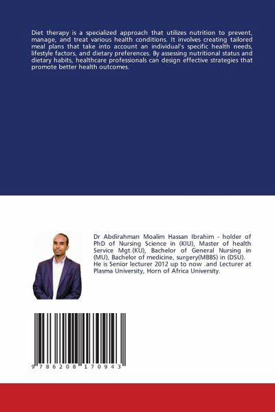 Diet therapy is a specialized approach that utilizes nutrition to prevent, manage, and treat various health conditions. It involves creating tailored meal plans that take into account an individual's specific health needs, lifestyle factors, and dietary preferences. By assessing nutritional status and dietary habits, healthcare professionals can design effective strategies that promote better health outcomes.