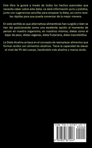 Este libro le guiará a través de todos los hechos esenciales que necesita saber sobre esta dieta. Le dará información pura y práctica, junto con sugerencias sencillas para empezar la dieta, así como recetas rápidas para que pueda comenzar de la mejor manera. En este sentido es que alternativas alimenticias han surgido o bien se han ido posicionando como una excelente opción al momento de pensar en nuestro organismo, en nosotros mismos; dietas como el bajar de peso, dietas veganas, dieta frutariana, dieta macrobiótica La Dieta Alcalina se basa en el concepto de reemplazar alimentos que forman ácidos con alimentos alcalinos. Tiene la capacidad de elevar el nivel del Ph del cuerpo, haciéndolo más alcalino y menos ácido.