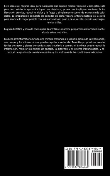 Este libro es el recurso ideal para cualquiera que busque mejorar su salud y bienestar. Este plan de comidas lo ayudará a lograr sus objetivos, ya sea que impliquen controlar la inflamación crónica, reducir el dolor y la fatiga o simplemente comer de manera más saludable. La preparación completa de comidas de dieta vegana antiinflamatoria es la clave para sentirse lo mejor posible con sus instrucciones paso a paso, recetas deliciosas y sugerencias útiles. La guía dietética y libro de cocina para la artritis reumatoide proporciona información actualizada sobre nutrición. La dieta antiinflamatoria brinda una mirada profunda a la ciencia detrás de la inflamación, sus causas y los alimentos que pueden ayudar a reducirla. También proporciona recetas fáciles de seguir y planes de comidas para ayudarlo a comenzar. La dieta puede reducir la inflamación, mejorar los niveles de energía, la digestión y el sistema inmunológico, y reducir el riesgo de enfermedades crónicas y los síntomas de las condiciones existentes.