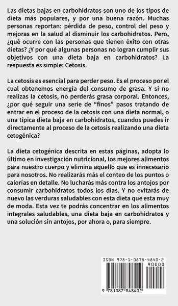 Las dietas bajas en carbohidratos son uno de los tipos de dieta más populares, y por una buena razón. Muchas personas reportan: pérdida de peso, control del peso y mejoras en la salud al disminuir los carbohidratos. Pero, ¿qué ocurre con las personas que tienen éxito con otras dietas? ¿Y por qué algunas personas no logran cumplir sus objetivos con una dieta baja en carbohidratos? La respuesta es simple: Cetosis. La cetosis es esencial para perder peso. Es el proceso por el cual obtenemos energía del consumo de grasa. Y si no realizas la cetosis, no perderás grasa corporal. Entonces, ¿por qué seguir una serie de "finos" pasos tratando de entrar en el proceso de la cetosis con una dieta normal, o una típica dieta baja en carbohidratos, cuandos puedes ir directamente al proceso de la cetosis realizando una dieta cetogénica? La dieta cetogénica descrita en estas páginas, adopta lo último en investigación nutricional, los mejores alimentos para nuestro cuerpo y elimina aquello que es innecesario para nosotros. No realizarás más el conteo de los puntos o calorías en detalle. No lucharás más contra los antojos por consumir carbohidratos todos los días. Y no evitarás de nuevo las verduras saludables con esta dieta que esta muy de moda. Esta vez te podrás concentrar en los alimentos integrales saludables, una dieta baja en carbohidratos y una solución sin antojos, por ahora o, para siempre.