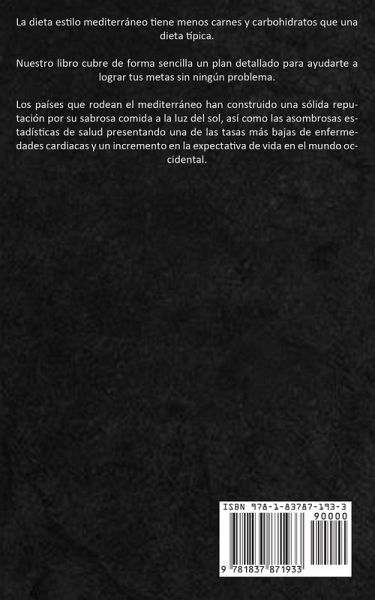 La dieta estilo mediterráneo tiene menos carnes y carbohidratos que una dieta típica. Nuestro libro cubre de forma sencilla un plan detallado para ayudarte a lograr tus metas sin ningún problema. Los países que rodean el mediterráneo han construido una sólida reputación por su sabrosa comida a la luz del sol, así como las asombrosas estadísticas de salud presentando una de las tasas más bajas de enfermedades cardiacas y un incremento en la expectativa de vida en el mundo occidental.