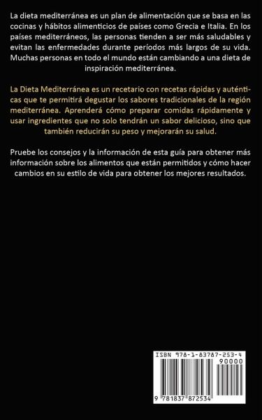 La dieta mediterránea es un plan de alimentación que se basa en las cocinas y hábitos alimenticios de países como Grecia e Italia. En los países mediterráneos, las personas tienden a ser más saludables y evitan las enfermedades durante períodos más largos de su vida. Muchas personas en todo el mundo están cambiando a una dieta de inspiración mediterránea. La Dieta Mediterránea es un recetario con recetas rápidas y auténticas que te permitirá degustar los sabores tradicionales de la región mediterránea. Aprenderá cómo preparar comidas rápidamente y usar ingredientes que no solo tendrán un sabor delicioso, sino que también reducirán su peso y mejorarán su salud. Pruebe los consejos y la información de esta guía para obtener más información sobre los alimentos que están permitidos y cómo hacer cambios en su estilo de vida para obtener los mejores resultados.