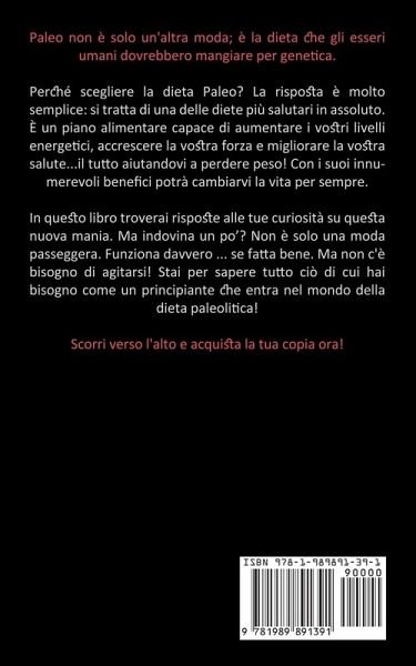 Paleo non è solo un'altra moda; è la dieta che gli esseri umani dovrebbero mangiare per genetica. Perché scegliere la dieta Paleo? La risposta è molto semplice: si tratta di una delle diete più salutari in assoluto. È un piano alimentare capace di aumentare i vostri livelli energetici, accrescere la vostra forza e migliorare la vostra salute...il tutto aiutandovi a perdere peso! Con i suoi innumerevoli benefici potrà cambiarvi la vita per sempre. In questo libro troverai risposte alle tue curiosità su questa nuova mania. Ma indovina un po’? Non è solo una moda passeggera. Funziona davvero ... se fatta bene. Ma non c'è bisogno di agitarsi! Stai per sapere tutto ciò di cui hai bisogno come un principiante che entra nel mondo della dieta paleolitica! Scorri verso l'alto e acquista la tua copia ora!