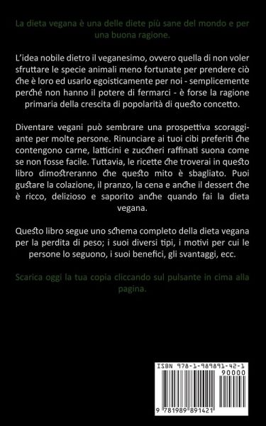 La dieta vegana è una delle diete più sane del mondo e per una buona ragione. L'idea nobile dietro il veganesimo, ovvero quella di non voler sfruttare le specie animali meno fortunate per prendere ciò che è loro ed usarlo egoisticamente per noi - semplicemente perché non hanno il potere di fermarci - è forse la ragione primaria della crescita di popolarità di questo concetto. Diventare vegani può sembrare una prospettiva scoraggiante per molte persone. Rinunciare ai tuoi cibi preferiti che contengono carne, latticini e zuccheri raffinati suona come se non fosse facile. Tuttavia, le ricette che troverai in questo libro dimostreranno che questo mito è sbagliato. Puoi gustare la colazione, il pranzo, la cena e anche il dessert che è ricco, delizioso e saporito anche quando fai la dieta vegana. Questo libro segue uno schema completo della dieta vegana per la perdita di peso; i suoi diversi tipi, i motivi per cui le persone lo seguono, i suoi benefici, gli svantaggi, ecc. Scarica oggi la tua copia cliccando sul pulsante in cima alla pagina