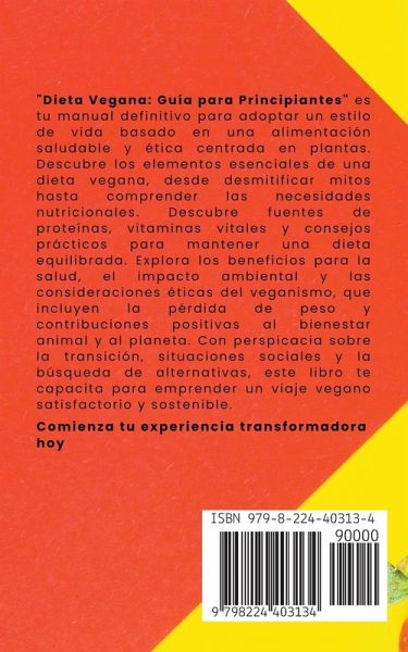 "Dieta Vegana: Guía para Principiantes" es tu manual definitivo para adoptar un estilo de vida basado en una alimentación saludable y ética centrada en plantas. Descubre los elementos esenciales de una dieta vegana, desde desmitificar mitos hasta comprender las necesidades nutricionales. Descubre fuentes de proteínas, vitaminas vitales y consejos prácticos para mantener una dieta equilibrada. Explora los beneficios para la salud, el impacto ambiental y las consideraciones éticas del veganismo, que incluyen la pérdida de peso y contribuciones positivas al bienestar animal y al planeta. Con perspicacia sobre la transición, situaciones sociales y la búsqueda de alternativas, este libro te capacita para emprender un viaje vegano satisfactorio y sostenible. ¡Comienza tu experiencia transformadora hoy!