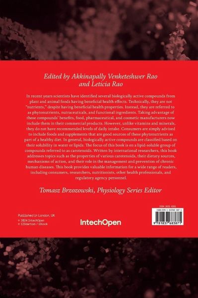 In recent years scientists have identified several biologically active compounds from plant and animal foods having beneficial health effects. Technically, they are not ¿nutrients,¿ despite having beneficial health properties. Instead, they are referred to as phytonutrients, nutraceuticals, and functional ingredients. Taking advantage of these compounds¿ benefits, food, pharmaceutical, and cosmetic manufacturers now include them in their commercial products. However, unlike vitamins and minerals, they do not have recommended levels of daily intake. Consumers are simply advised to include foods and supplements that are good sources of these phytonutrients as part of a healthy diet. In general, biologically active compounds are classified based on their solubility in water or lipids. The focus of this book is on a lipid-soluble group of compounds referred to as carotenoids. Written by international researchers, this book addresses topics such as the properties of various carotenoids, their dietary sources, mechanisms of action, and their role in the management and prevention of chronic human diseases. This book provides valuable information for a wide range of readers, including consumers, researchers, nutritionists, other health professionals, and regulatory agency personnel.