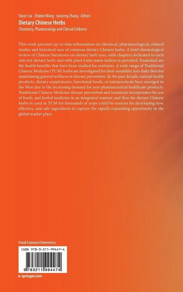 This work presents up-to-date information on chemical, pharmacological, clinical studies and historical uses of common dietary Chinese herbs. Authored by native experts in the field, the reader is introduced to each herb with a brief chronological review of Chinese literature on dietary herb uses, with chapters dedicated to each selected herb including color photos for each herb. In addition, Chinese characters as well as the Latin botanical name indices, and chemical structures for the known active compounds are also provided. The clear layout examines the health benefits that have been studied for centuries, including current clinical and toxicological data. A wide range of Traditional Chinese Medicine (TCM) herbs are investigated for their suitability into daily diets for maintaining general wellness or disease prevention. In the past decades, natural health products, dietary supplements, functional foods, or nutraceuticals have emerged in the West due to the increasing demand for non-pharmaceutical healthcare products. Traditional Chinese Medicine disease prevention and treatment incorporates the use of foods, and herbal medicine in an integrated manner, and thus the dietary Chinese herbs in used in TCM for thousands of years could be sources for developing new, effective, and safe ingredients to capture the rapidly expanding opportunity in the global market place.