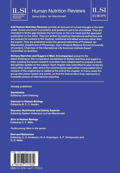 ILSI Human Nutrition Reviews provide an account of current thought in the field under review and point to problems and questions yet to be elucidated. They are intended to fill the gap between the textbook on the one hand and the specialist publication on the other. They are written by leading international authorities and are reviews for workers in the medical, nutritional and allied sciences rather than the expert. Dietary Starches and Sugar in Man presents the latest thinking of leading research scientists in a unique, multi-authored book. Leading European experts have collaborated to prepare a multi-disciplinary update on the subject. Each chapter was submitted to peer review by every other author, after which the commentaries were either incorporated into a revision of the original text or added at the end of the chapter. In many cases the group discussion raised new points, so that the final product truly represents a complete picture of international expertise. This book thus gives nutrition experts in the medical sciences and the food industry all current information on the latest research, and the critiques of this research, concerning these two groups of carbohydrates.