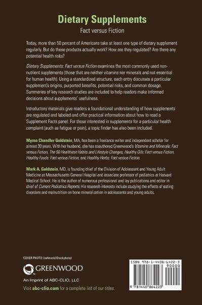 This accessibly written book examines the most commonly taken dietary supplements, exploring what they are and what they're purported to do, and summarizing key research findings regarding their potential health benefits and risks. Today, more than 50 percent of Americans take at least one type of dietary supplement regularly. But do these products actually work? How are they regulated? Are there any potential health risks? Dietary Supplements: Fact versus Fiction examines the most commonly used non-nutrient supplements (those that are neither vitamins nor minerals and not essential for human health). Using a standardized structure, each entry discusses a particular supplement's origins, purported benefits, potential risks, and common dosage. Summaries of key research studies are included to help readers make informed decisions about supplements' usefulness. Introductory materials give readers a foundational understanding of how supplements are regulated and labeled and offer practical information about how to read a Supplement Facts panel. For those interested in supplements for a particular health complaint (such as fatigue or pain), a topic finder has also been included.