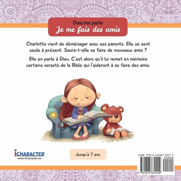 Charlotte vient de déménager avec ses parents. Elle se sent seule à présent. Saura-t-elle se faire de nouveaux amis ? Elle en parle à Dieu. C'est alors qu'il lui remet en mémoire certains versets de la Bible qui l'aideront à se faire des amis. Jusqu'à 7 ans. Rendez-nous visite sur le site www.iCharacter.eu