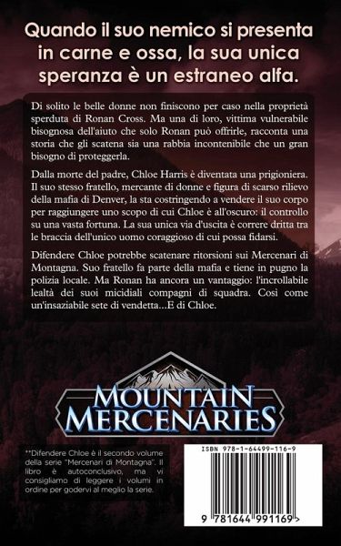 L'amore è la migliore difesa nell'esplosivo romanzo dei Mercenari di Montagna della scrittrice di bestsellers del New York Times Susan Stoker. Di solito le belle donne non finiscono per caso nella proprietà sperduta di Ronan Cross. Ma una di loro, vittima vulnerabile bisognosa dell'aiuto che solo Ronan può offrirle, racconta una storia che gli scatena sia una rabbia incontenibile che un gran bisogno di proteggerla. Dalla morte del padre, Chloe Harris è diventata una prigioniera. Il suo stesso fratello, mercante di donne e figura di scarso rilievo della mafia di Denver, la sta costringendo a vendere il suo corpo per raggiungere uno scopo di cui Chloe è all'oscuro: il controllo su una vasta fortuna. La sua unica via d'uscita è correre dritta tra le braccia dell'unico uomo coraggioso di cui possa fidarsi. Difendere Chloe potrebbe scatenare ritorsioni sui Mercenari di Montagna. Suo fratello fa parte della mafia e tiene in pugno la polizia locale. Ma Ronan ha ancora un vantaggio: l'incrollabile lealtà dei suoi micidiali compagni di squadra. Così come un'insaziabile sete di vendetta...E di Chloe.