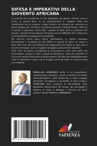 La miseria che caratterizza la vita quotidiana dei giovani africani sarà al centro di questo libro, in cui esamineremo le maggiori sfide che impediscono loro di scoprire i propri talenti e di sfruttarli per costruire un futuro migliore per se stessi, la propria comunità, il proprio Paese, l'Africa e il mondo in generale. Come tutti i giovani di altre parti e continenti del mondo, i giovani africani devono affrontare enormi difficoltà che li colpiscono e ne ostacolano lo sviluppo e la prosperità.Per decenni prima della nostra generazione, le stesse situazioni persistevano e rendevano la vita difficile ai giovani di allora. La storia ci parla delle loro vite, che differiscono leggermente da quelle di oggi solo in termini cronologici, ma le situazioni rimangono praticamente identiche.Sulla base di questa somiglianza di circostanze e sulla base delle sue osservazioni, l'autore è stato in grado di identificare i fatti che considera le cause del destino sfortunato di questi giovani. Ha descritto dettagliatamente i fatti in questione e spera che la maggior parte dei lettori si convinca della sua scoperta.