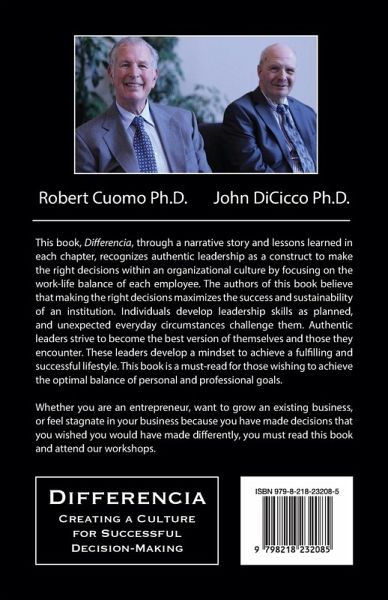 This book, Differencia, through a narrative story and lessons learned in each chapter, recognizes authentic leadership as a construct to make the right decisions within an organizational culture by focusing on the work-life balance of each employee. The authors of this book believe that making the right decisions maximizes the success and sustainability of an institution. Individuals develop leadership skills as planned, and unexpected everyday circumstances challenge them. Authentic leaders strive to become the best version of themselves and those they encounter. These leaders develop a mindset to achieve a fulfilling and successful lifestyle. This book is a must-read for those wishing to achieve the optimal balance of personal and professional goals.