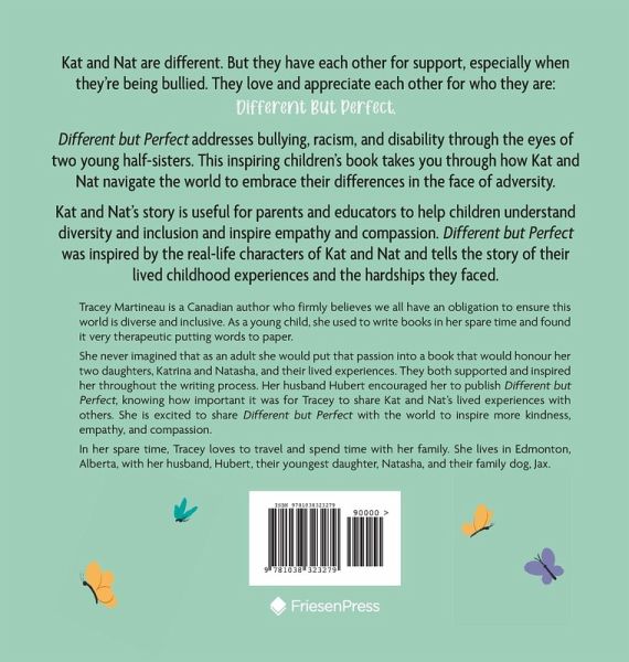 Kat and Nat are different. But they have each other for support, especially when they're being bullied. They love and appreciate each other for who they are: different, but perfect. Different but Perfect addresses bullying, racism, and disability through the eyes of two young half-sisters. This inspiring children's book takes you through how Kat and Nat navigate the world to embrace their differences in the face of adversity. Kat and Nat's story is useful for parents and educators to help children understand diversity and inclusion and inspire empathy and compassion. Different but Perfect was inspired by the real-life characters of Kat and Nat and tells the story of their lived childhood experiences and the hardships they faced.