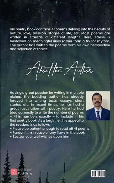 His Poetry Book contains twenty one poems delving into beauty of nature, love, passion, stages of life, etc. Mostly poems are written in stanzas in different lengths. Here stresses bestowed on meaningful lines rather than a try for rhythm. Author has written the poems as per his own perspective and selection of topics.