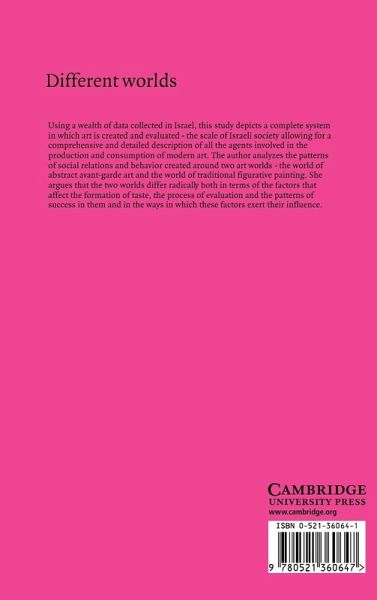 Using a wealth of data collected in Israel, this study depicts a complete system in which art is created and evaluated - the scale of Israeli society allowing for a comprehensive and detailed description of all the agents involved in the production and consumption of modern art. The author analyzes the patterns of social relations and behavior created around two art worlds - the world of abstract avant-garde art and the world of traditional figurative painting. She argues that the two worlds differ radically both in terms of the factors that affect the formation of taste, the process of evaluation and the patterns of success in them and in the ways in which these factors exert their influence.