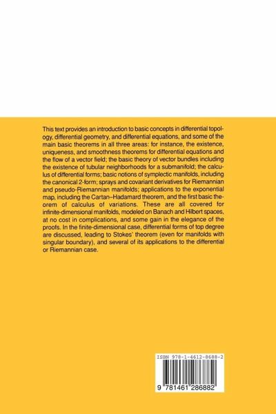 This is the third version of a book on differential manifolds. The first version appeared in 1962, and was written at the very beginning of a period of great expansion of the subject. At the time, I found no satisfactory book for the foundations of the subject, for multiple reasons. I expanded the book in 1971, and I expand it still further today. Specifically, I have added three chapters on Riemannian and pseudo Riemannian geometry, that is, covariant derivatives, curvature, and some applications up to the Hopf-Rinow and Hadamard-Cartan theorems, as well as some calculus of variations and applications to volume forms. I have rewritten the sections on sprays, and I have given more examples of the use of Stokes' theorem. I have also given many more references to the literature, all of this to broaden the perspective of the book, which I hope can be used among things for a general course leading into many directions. The present book still meets the old needs, but fulfills new ones. At the most basic level, the book gives an introduction to the basic concepts which are used in differential topology, differential geometry, and differential equations. In differential topology, one studies for instance homotopy classes of maps and the possibility of finding suitable differentiable maps in them (immersions, embeddings, isomorphisms, etc.).