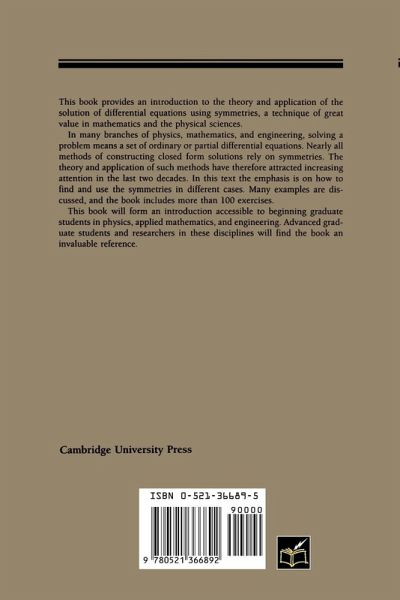 This book provides an introduction to the theory and application of the solution of differential equations using symmetries, a technique of great value in mathematics and the physical sciences. In many branches of physics, mathematics, and engineering, solving a problem means a set of ordinary or partial differential equations. Nearly all methods of constructing closed form solutions rely on symmetries. The theory and application of such methods have therefore attracted increasing attention in the last two decades. In this text the emphasis is on how to find and use the symmetries in different cases. Many examples are discussed, and the book includes more than 100 exercises. This book will form an introduction accessible to beginning graduate students in physics, applied mathematics, and engineering. Advanced graduate students and researchers in these disciplines will find the book an invaluable reference.