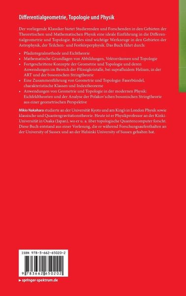 Der vorliegende Klassiker bietet Studierenden und Forschenden in den Gebieten der Theoretischen und Mathematischen Physik eine ideale Einführung in die Differentialgeometrie und Topologie. Beides sind wichtige Werkzeuge in den Gebieten der Astrophysik, der Teilchen- und Festkörperphysik. Das Buch führt durch: