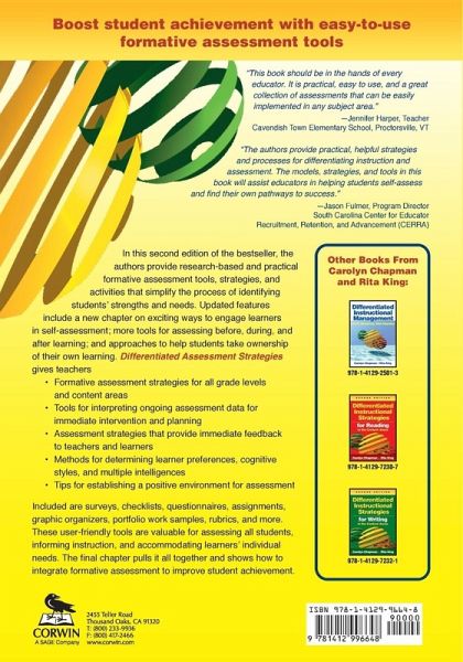 This updated edition includes a generous selection of user-friendly strategies that help teachers assess struggling learners, students with special needs, children who are performing at grade level, and advanced learners. Included are practical tools that improve student performance and help them take responsibility for their own learning.