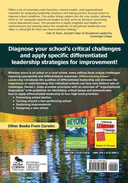 Diagnose your school's critical challenges and apply specific differentiated leadership strategies for improvement! Whether yours is an urban or a rural school, every setting faces unique types of challenges requiring an appropriate and differentiated response. This book introduces the qualities of differentiated leadership and stresses the importance of understanding that different schools can face very distinct sets of challenges. The author provides principals with an overview of "organizational diagnostics" with guidelines for identifying critical issues and demonstrates how to apply differentiated leadership to four high-level priorities: Preventing school decline Turning around a low-performing school Sustaining improvements Designing a new school