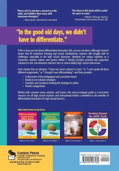 ve Been Teaching This Way for Years and It Works A Description of the Issue Solution Strategies Practice Assignments for Overcoming This Obstacle Obstacle#15: There's No Support For It At My School A Description of the Issue Solution Strategies Practice Assignments for Overcoming This Obstacle Obstacle #16: My District Requires Me to Follow a Prescribed Text A Description of the Issue Textbook Options Can Create More Effective Readers A Variety of Reading Materials Keeps Information Updated A Variety of Texts Makes the Information Available to More Students Solution Strategies Practice Assignments for Overcoming This Obstacle Obstacle #17: Parents Expect Lecture Format in High School For College Prep A Description of the Issue Differentiated Reading Strategies Help Prepare Students for College Learning Solution Strategies Practice Assignments for Overcoming This Obstacle Obstacle #18: The Bottom Line-If They Are Learning, You Are Teaching A Description of the Issue Some Students Struggle with Linguistic Dependent Input and Output Some Students Struggle with Visual Input and Output Solution Strategies Practice Assignments for Overcoming This Obstacle Suggestions for Further Reading Layered Curriculum and Other Specific Strategies for Differentiating Instruction Neuroscience and Learning Inclusion Strategies Control Theory and Self Efficacy Pedagogical Theory History of the United States School System Classroom and School Leadership References Index