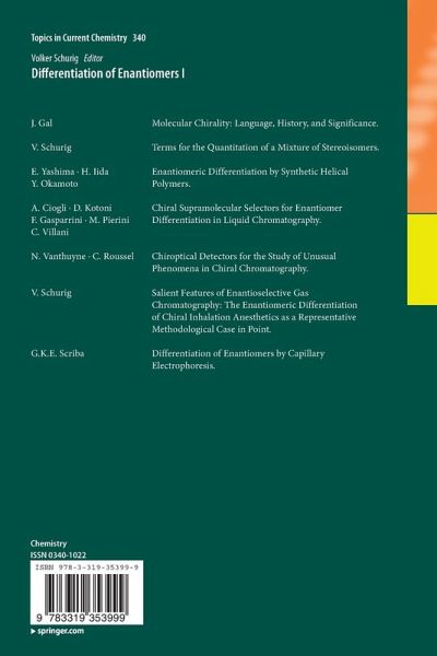 "Differentiation of Enantiomers is a two-volume work containing chapters prepared by experts in their fields. The abundantly illustrated content (more than 300 figures and schemes) makes it a valuable and up-to-date resource for researchers and graduate students interested in chiral purification methods not based on liquid chromatography." (Alain Berthod, Analytical and Bioanalytical Chemistry, June, 2014)