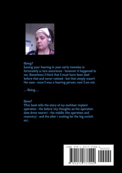 This book tells the story of my cochlear implant operation - the before (my thoughts as the operation date drew closer), the middle (the operation and recovery) and the after (waiting for the big switch on). Writing things down was an important process for me - but I also came to hope that my story would be useful to someone else in the future; after all there is little literature available for young adults who become deafened.