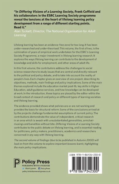 This first volume explores the ways lifelong learning can contribute to the development of knowledge and skills for employment, and other areas of adult life. It addresses the challenges for researchers to study issues that are central and directly relevant to the political and policy debate, and to take into account the reality of people's lives.