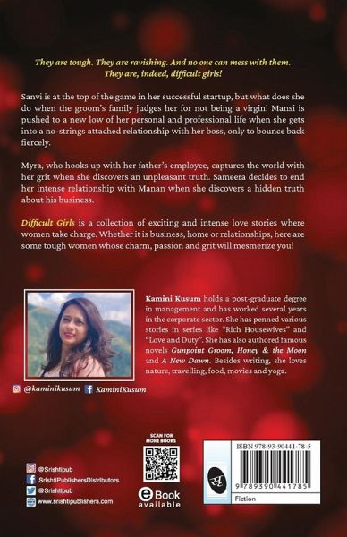 They are tough. They are ravishing. And, no one can mess with them. They are, indeed, difficult girls! Sanvi is at the top of the game in her successful startup, but what does she do when the groom's family judges her for not being a virgin! Mansi is pushed to a new low of her personal and professional life when she gets into a no-strings attached relationship with her boss, only to bounce back fiercely. Myra, who hooks up with her father's employee, captures the world with her grit when she discovers an unpleasant truth. Sameera decides to end her intense relationship with Manan when she discovers a hidden truth about his business. Difficult Girls is a collection of exciting and intense love stories where women take charge. Whether it is business, home or relationships, here are some tough women whose charm, passion and grit will mesmerize you!