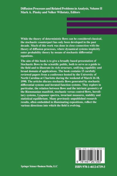 During the weekend of March 16-18, 1990 the University of North Carolina at Charlotte hosted a conference on the subject of stochastic flows, as part of a Special Activity Month in the Department of Mathematics. This conference was supported jointly by a National Science Foundation grant and by the University of North Carolina at Charlotte. Originally conceived as a regional conference for researchers in the Southeastern United States, the conference eventually drew participation from both coasts of the U. S. and from abroad. This broad-based par ticipation reflects a growing interest in the viewpoint of stochastic flows, particularly in probability theory and more generally in mathematics as a whole. While the theory of deterministic flows can be considered classical, the stochastic counterpart has only been developed in the past decade, through the efforts of Harris, Kunita, Elworthy, Baxendale and others. Much of this work was done in close connection with the theory of diffusion processes, where dynamical systems implicitly enter probability theory by means of stochastic differential equations. In this regard, the Charlotte conference served as a natural outgrowth of the Conference on Diffusion Processes, held at Northwestern University, Evanston Illinois in October 1989, the proceedings of which has now been published as Volume I of the current series. Due to this natural flow of ideas, and with the assistance and support of the Editorial Board, it was decided to organize the present two-volume effort.