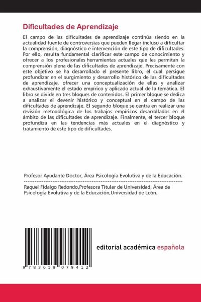 El campo de las dificultades de aprendizaje continúa siendo en la actualidad fuente de controversias que pueden llegar incluso a dificultar la comprensión, diagnóstico e intervención de este tipo de dificultades. Por ello, resulta fundamental clarificar este campo de conocimiento y ofrecer a los profesionales herramientas actuales que les permitan la comprensión plena de las dificultades de aprendizaje. Precisamente con este objetivo se ha desarrollado el presente libro, el cual persigue profundizar en el surgimiento y desarrollo histórico de las dificultades de aprendizaje, ofrecer una conceptualización de ellas y analizar exhaustivamente el estado empírico y aplicado actual de la temática. El libro se divide en tres bloques de contenidos. El primer bloque se dedica a analizar el devenir histórico y conceptual en el campo de las dificultades de aprendizaje. El segundo bloque se centra en realizar una revisión metodológica de los trabajos empíricos desarrollados en el ámbito de las dificultades de aprendizaje. Finalmente, el tercer bloque profundiza en las tendencias más actuales en el diagnóstico y tratamiento de este tipo de dificultades.