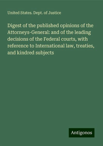 Digest of the published opinions of the Attorneys-General: and of the leading decisions of the Federal courts, with reference to International law, treaties, and kindred subjects - Justice, United States. Dept. Of