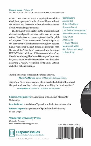 The term "gastrocracy" refers to the appropriation of discourses and practices related to the sourcing, preparation, distribution, and consumption of food for political purposes. The intersections of gastronomy and governance, dating in Spain to the last quarter of the nineteenth century, have become highly visible over the past decade, when political debates around nationalism in its different forms have taken the guise of discussions about regional and local cuisines. Concomitant with the rise of the "slow food" movement and following UNESCO's addition in 2011 of "Gastronomic Meal of the French" to its list of Intangible Cultural Heritage of Humanity, public and private associations all around Spain have been established with the goal of achieving recognition by UNESCO for Spanish, Catalan, and other national cuisines. In 2016, Gastro Marca España--an association and a web portal--was launched to raise the profile of food in Spain's national brand. Eliciting wide public participation, coopted for political purposes, regarded as a factor of economic development on any scale, and integrated into every so-called banal nationalism, the production, distribution, and consumption of food are highly relevant for historical analysis. Seeking to encourage a broader discussion about Peninsular gastrocracies, this book brings together an interdisciplinary group of scholars from different sides of the Atlantic and the Pacific who have spearheaded research on gastronomy and governance in Spain.
