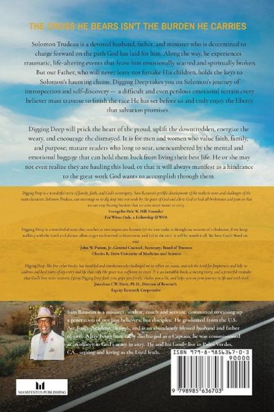 Solomon Trudeau is a devoted husband, father, and minister who is determined to charge forward on the path God has laid for him. Along the way, he experiences traumatic, life-altering events that leave him emotionally scarred and spiritually broken. But our Father, who will never leave nor forsake His children, holds the keys to Solomon's haunting chains. Digging Deep takes you on Solomon's journey of introspection and self-discovery -- a difficult and even perilous emotional terrain every believer must traverse to finish the race He has set before us and truly enjoy the liberty that salvation promises. Digging Deep will prick the heart of the proud, uplift the downtrodden, energize the weary, and encourage the dismayed. It is for men and women who value faith, family, and purpose; mature readers who long to soar, unencumbered by the mental and emotional baggage that can hold them back from living their best life. He or she may not even realize they are hauling this load, or that it will always manifest as a hindrance to the great work God wants to accomplish through them.