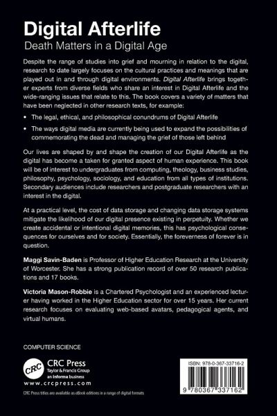 Our lives are shaped by and shape the creation of our Digital Afterlife as the digital has become a taken for granted aspect of human experience. This book will be of interest to undergraduates from computing, theology, business studies, philosophy, psychology, sociology, and education from all types of institutions. Secondary audiences include researchers and postgraduate researchers with an interest in the digital.