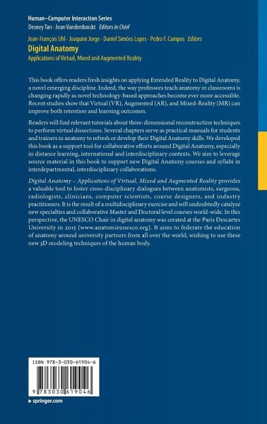 This book offers readers fresh insights on applying Extended Reality to Digital Anatomy, a novel emerging discipline. Indeed, the way professors teach anatomy in classrooms is changing rapidly as novel technology-based approaches become ever more accessible. Recent studies show that Virtual (VR), Augmented (AR), and Mixed-Reality (MR) can improve both retention and learning outcomes.