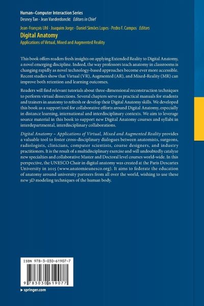 This book offers readers fresh insights on applying Extended Reality to Digital Anatomy, a novel emerging discipline. Indeed, the way professors teach anatomy in classrooms is changing rapidly as novel technology-based approaches become ever more accessible. Recent studies show that Virtual (VR), Augmented (AR), and Mixed-Reality (MR) can improve both retention and learning outcomes.