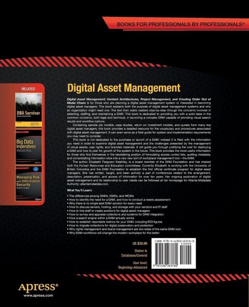Digital Asset Management: Content Architectures, Project Management, and Creating Order out of Media Chaos is for those who are planning a digital asset management system or interested in becoming digital asset managers. This book explains both the purpose of digital asset management systems and why an organization might need one. The text then walks readers step-by-step through the concerns involved in selecting, staffing, and maintaining a DAM. This book is dedicated to providing you with a solid base in the common concerns, both legal and technical, in launching a complex DAM capable of providing visual search results and workflow options.