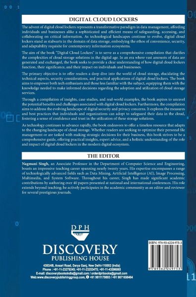 The aim of the book "Digital Cloud Lockers" is to serve as a comprehensive compilation that clarifies the complexities of cloud storage solutions in the digital age. In an era where vast amounts of data are generated and exchanged, the book seeks to provide a clear understanding of how digital cloud lockers function, their significance, and their impact on individuals and businesses.The primary objective is to offer readers a deep dive into the world of cloud storage, elucidating the technical aspects, security considerations, and practical applications of digital cloud lockers. The book aims to empower both tech enthusiasts and those less familiar with the subject, equipping them with the knowledge needed to make informed decisions regarding the adoption and utilization of cloud storage servicesAs technology continues to advance rapidly, the book endeavors to offer a timeless resource that adapts to the changing landscape of cloud storage. Whether readers are seeking to optimize their personal file management or are tasked with making strategic decisions for their business, this book strives to be a comprehensive guide, offering practical insights, expert advice, and a holistic understanding of the role and impact of digital cloud lockers in the modern digital ecosystem. .