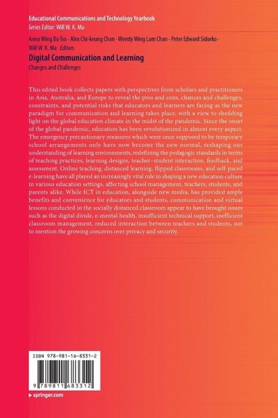 This edited book collects papers with perspectives from scholars and practitioners in Asia, Australia, and Europe to reveal the pros and cons, chances and challenges, constraints, and potential risks that educators and learners are facing as the new paradigm for communication and learning takes place, with a view to shedding light on the global education climate in the midst of the pandemic. Since the onset of the global pandemic, education has been revolutionized in almost every aspect. The emergency precautionary measures which were once supposed to be temporary school arrangements only have now become the new normal, reshaping our understanding of learning environments, redefining the pedagogic standards in terms of teaching practices, learning designs, teacher-student interaction, feedback, and assessment. Online teaching, distanced learning, flipped classrooms, and self-paced e-learning have all played an increasingly vital role in shaping a new education culture in various education settings, affecting school management, teachers, students, and parents alike. While ICT in education, alongside new media, has provided ample benefits and convenience for educators and students, communication and virtual lessons conducted in the socially distanced classroom appear to have brought issues such as the digital divide, e-mental health, insufficient technical support, inefficient classroom management, reduced interaction between teachers and students, not to mention the growing concerns over privacy and security.