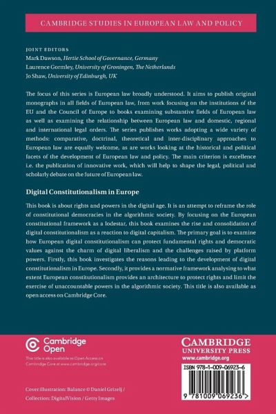 This book provides the first study on digital constitutionalism in Europe. The research explains the European constitutional reaction to the challenges of digital capitalism while exploring a normative perspective to protect fundamental rights and democracy in the algorithmic society based on the path of European digital constitutionalism.