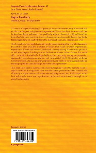 This book introduces a theorized and systematic glimpse into the exciting realm of digital creativity. It is organized with contents starting from individuals to teams and ultimately to organizations, each with various techniques and cases. Each chapter shows how individuals, teams, and organizations can become more creative through use of digital technologies.