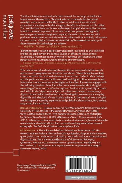 'Studies of Internet communication have tended, for too long, to sideline the importance of the emotions. This book sets out to remedy this important oversight, and succeeds brilliantly. It offers us a rich new theoretical and conceptual vocabulary with which to grasp the affective dynamics of life online. The contributions tease-out from a wide range of empirical case studies the ways in which the emotive power of love, hate, seduction, passion, nostalgia and mourning reverberate through (and beyond) the realm of the Internet, with profound implications for our individual and collective lives. Scholarly, informative and provocative, Digital Cultures and the Politics of Emotion should be read by all those interested in technology and culture.'
