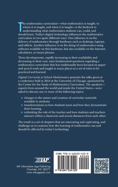 A volume in Research in Mathematics Education Series Editors: Denisse R. Thompson, University of South Florida, Mary Ann Huntley, Cornell University, and Christine Suurtamm, University of Ottawa The mathematics curriculum - what mathematics is taught, to whom it is taught, and when it is taught - is the bedrock to understanding what mathematics students can, could, and should learn. Today's digital technology influences the mathematics curriculum in two quite different ways. One influence is on the delivery of mathematics through hardware such as desktops, laptops, and tablets. Another influence is on the doing of mathematics using software available on this hardware, but also available on the internet, calculators, or smart phones. These developments, rapidly increasing in their availability and decreasing in their cost, raise fundamental questions regarding a mathematics curriculum that has traditionally been focused on paper-and-pencil work and taught in many places as a set of rules to be practiced and learned. This volume presents the talks given at a conference held in 2014 at the University of Chicago, sponsored by the Center for the Study of Mathematics Curriculum. The speakers - experts from around the world and inside the USA - were asked to discuss one or more of the following topics: ¿ changes in the nature and creation of curricular materials available to students ¿ transformations in how students learn and how they demonstrate their learning ¿ rethinking the role of the teacher and how students and teachers interact within a classroom and across distances from each other The result is a set of articles that are interesting and captivating, and challenge us to examine how the learning of mathematics can and should be affected by today's technology.