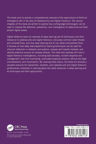 This book offers a groundbreaking exploration of how Artificial Intelligence is revolutionizing cybersecurity and digital forensics. It covers a wide range of topics, from AI-based threat detection and zero-day vulnerability defense to legal frameworks and ethical considerations in cybercrime investigations.